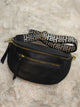 Banane avec parties supérieures zippées, poche avant zippée et large sangle en toile réglable.